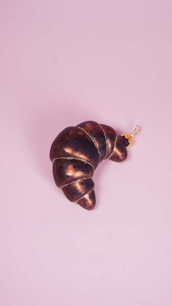 Description: Gedetailleerde kerstbal in de vorm van een krokante croissant.