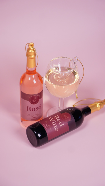 Description: Mini-roséfles als feestelijke kerstdecoratie.