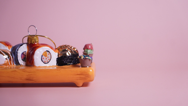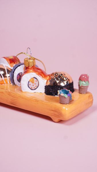 Description: Miniatuur sushi platter als kerstdecoratie voor de culinaire fijnproever.